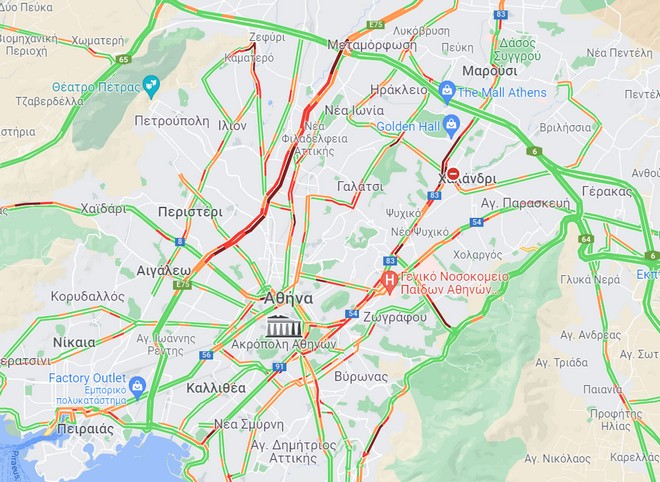 Παράλληλα, συμφόρηση παρατηρείται στο κέντρο της Αθήνας, σε τμήματα των Λεωφόρων Αλεξάνδρας και Βασιλίσσης Σοφίας.