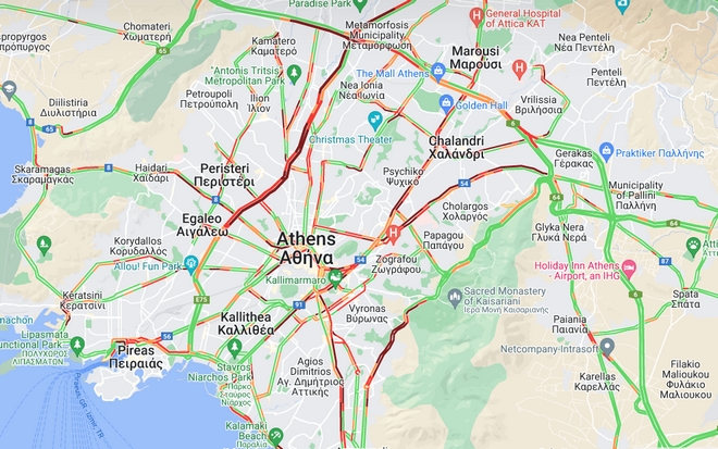 Ειδικότερα, αυτήν την ώρα παρατηρούνται μεγάλες καθυστερήσεις και στα δύο ρεύματα του Κηφισού, στην άνοδο από το Αιγάλεω μέχρι τη Νέα Φιλαδέλφεια και στην κάθοδο από το ύψος της Λυκόβρυσης μέχρι το Αιγάλεω. Μποτιλιάρισμα σημειώνεται στη Λ. Κηφισίας, κυρίως στο ρεύμα καθόδου από το ύψος του Αμαρουσίου μέχρι τον Ευαγγελισμό – στην άνοδό της τα προβλήματα εντοπίζονται στο ύψος του Ψυχικού.