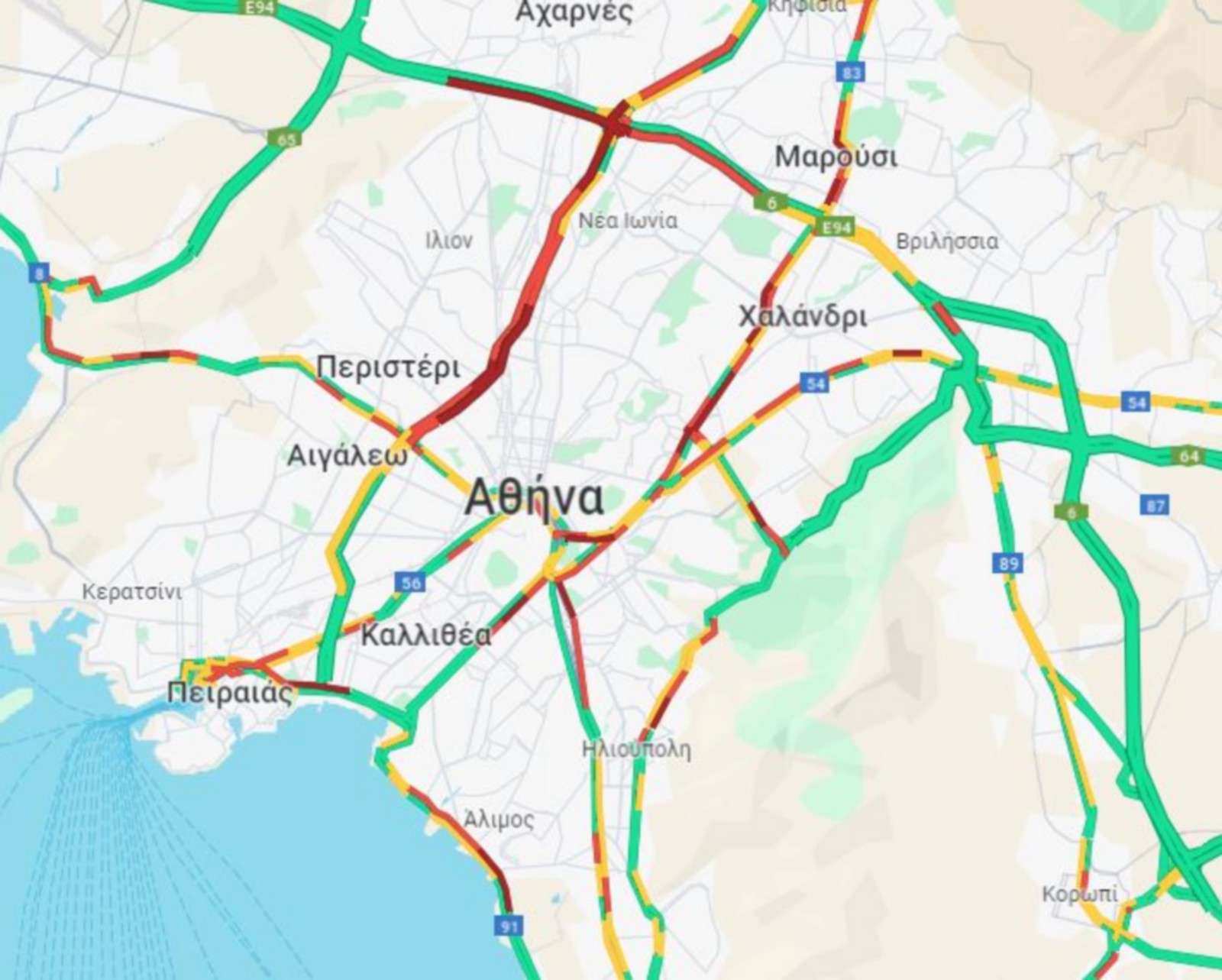 Την ίδια ώρα, μποτιλιάρισμα υπάρχει την ίδια ώρα στην άνοδο του Κηφισού. Καθυστερήσεις και στην κάθοδο.