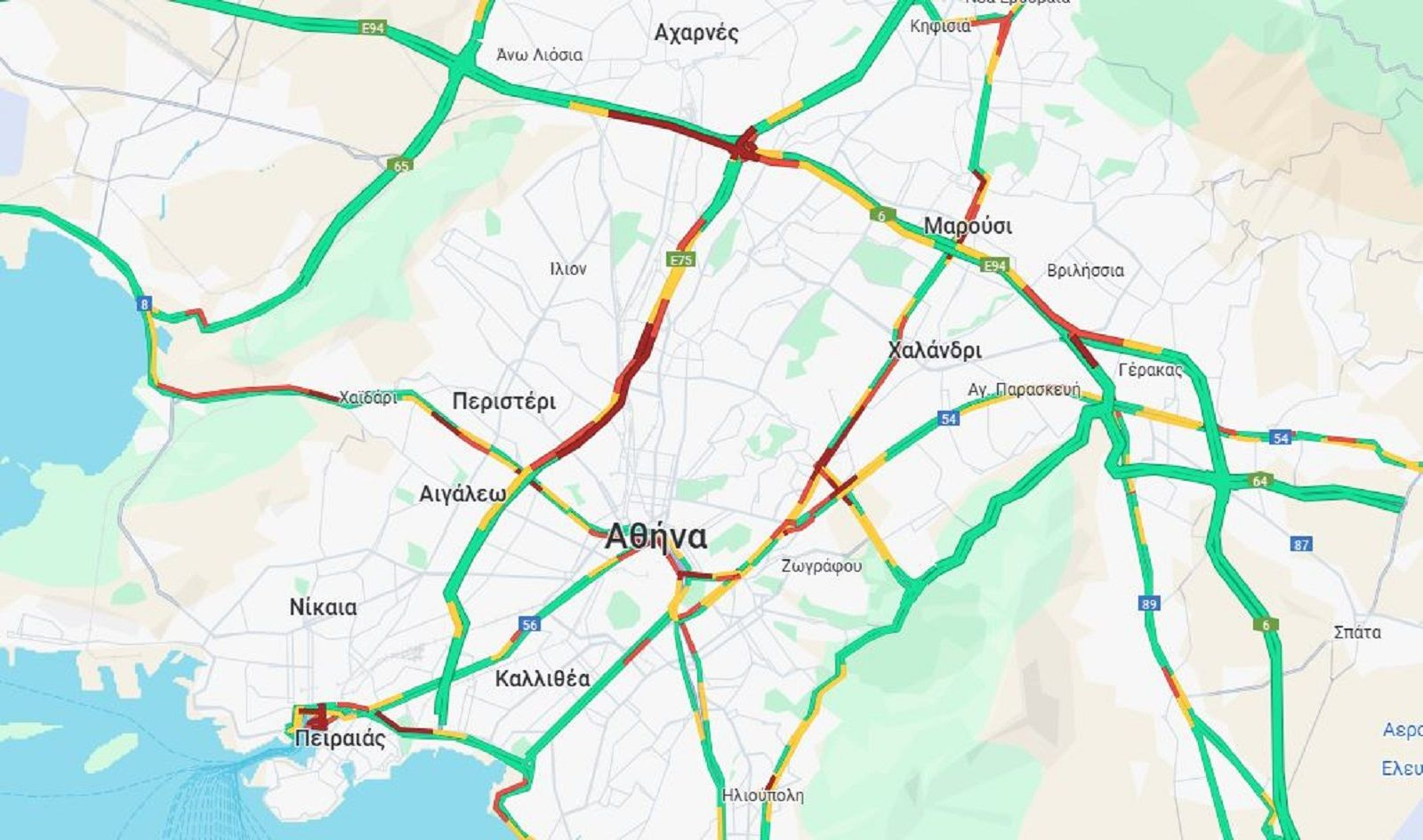 Κίνηση στους δρόμους: Μεγάλες καθυστερήσεις σε Κηφισό και Κηφισίας – LIVE ΧΑΡΤΗΣ