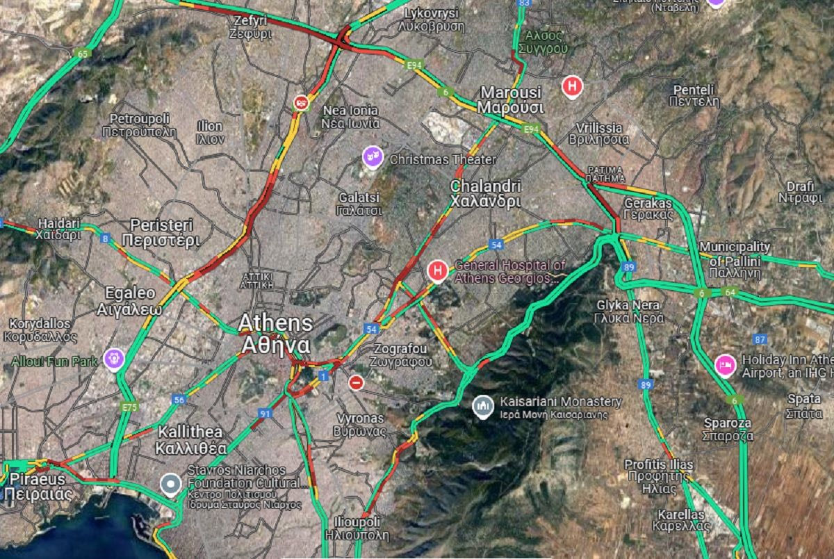 - Άνω των 30′ από Περιφερειακή Αιγάλεω έως Κηφισίας,