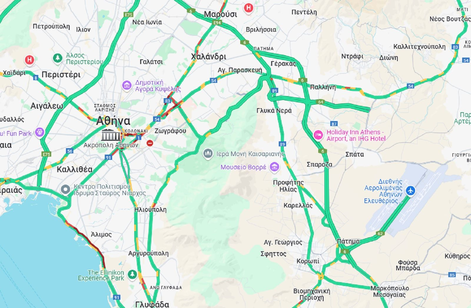 Για τον λόγο αυτό τα οχήματα στην λεωφόρο Ποσειδώνος κινούνται με χαμηλές ταχύτητες, σχεδόν ακινητοποιημένα, από τον Φλοίσβο μέχρι το Ελληνικό.