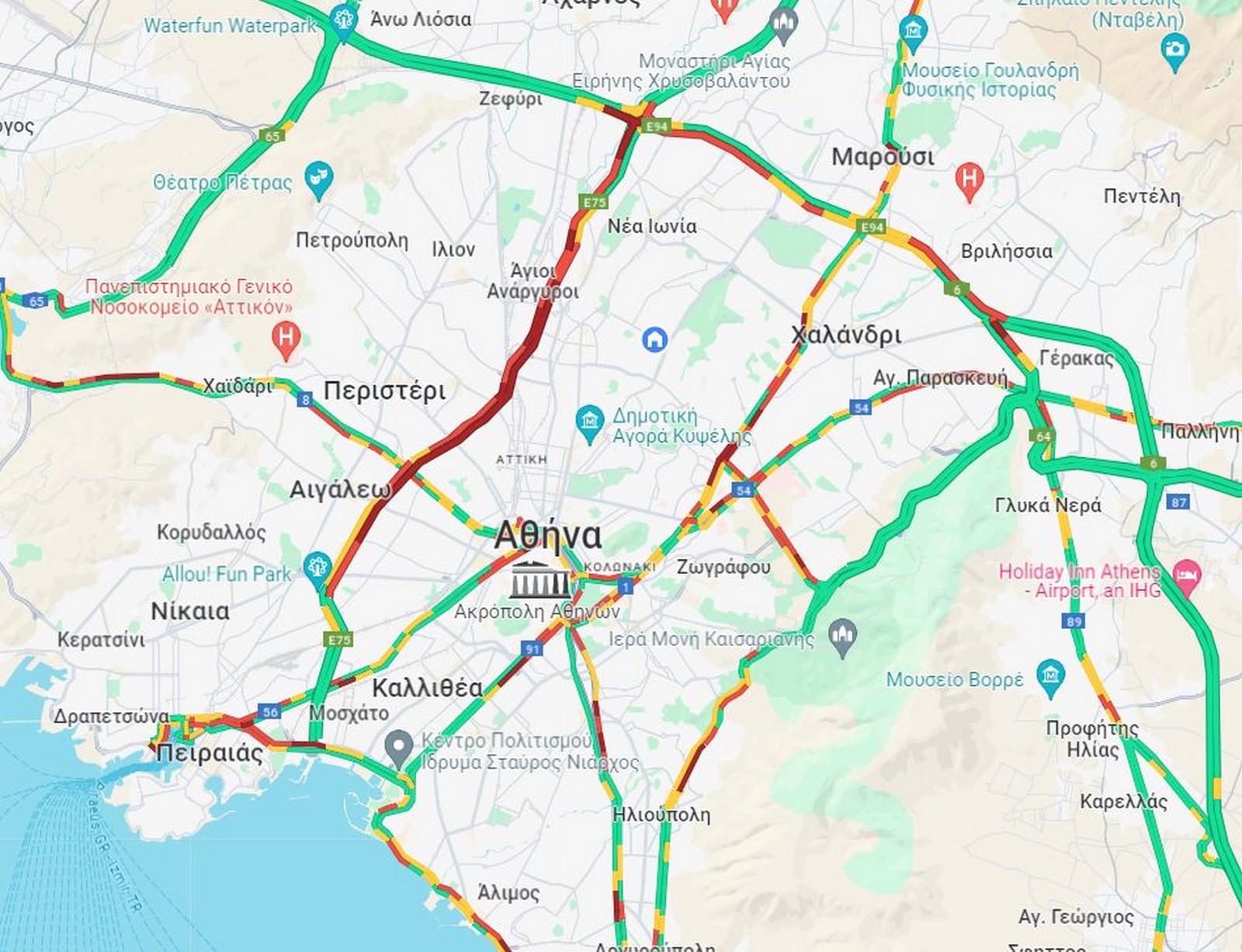 Κίνηση στους δρόμους: Ουρές χιλιομέτρων στον Κηφισό – LIVE Χάρτης