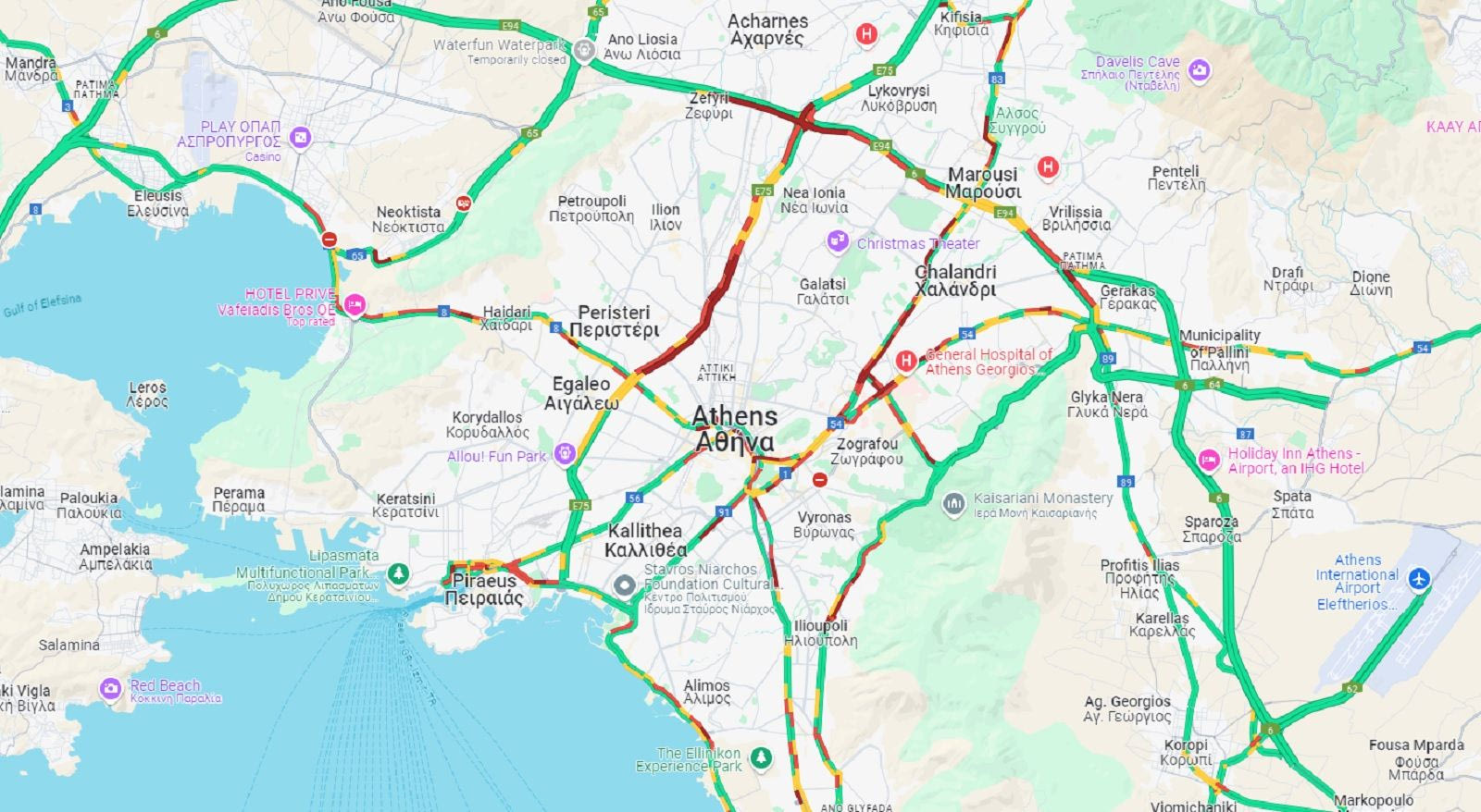 Σημαντικές καθυστερήσεις καταγράφεται και στη λεωφόρο Συγγρού, από το ύψος της Φαλήρου έως τον Άγιο Σώστη, στην Σταδίου, την Βασιλίσσης Σοφίας και την Βασιλέως Κωνσταντίνου.