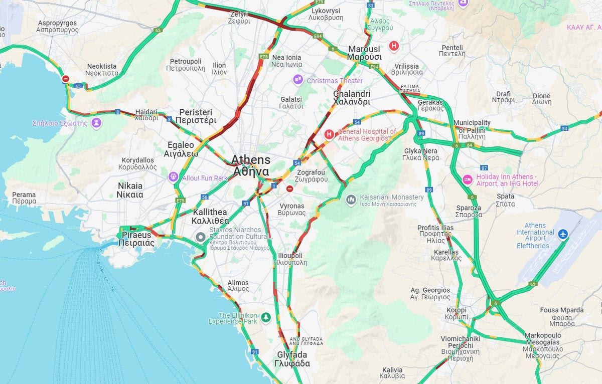 Κίνηση στους δρόμους: Παρέλυσε η Πατησίων-Χάος στην Αττική Οδό – LIVE ΧΑΡΤΗΣ