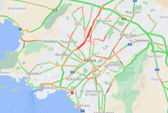 Κίνηση στους δρόμους: Ποιες περιοχές είναι στα “κόκκινα” – LIVE Χάρτης