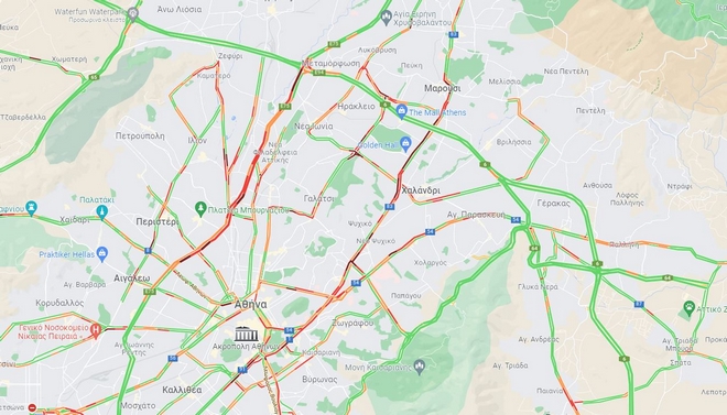 Πυκνή ροή των οχημάτων παρατηρείται στην Αθηνών – Κορίνθου στο ύψος του Σκαραμαγκά, αλλά και σε Συγγρού, Βασ. Κωνσταντίνου, Αμαλίας, Βασ. Σοφίας, Πειραιώς, Κηφισίας, Μεσογείων, Φιλολάου και Μιχαλακοπούλου.