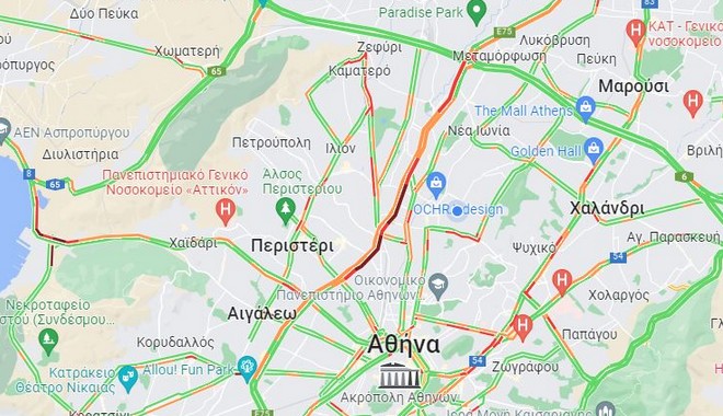 Κίνηση στους δρόμους: Προβλήματα σε Κηφισό και Λ. Αθηνών – LIVE ΧΑΡΤΗΣ