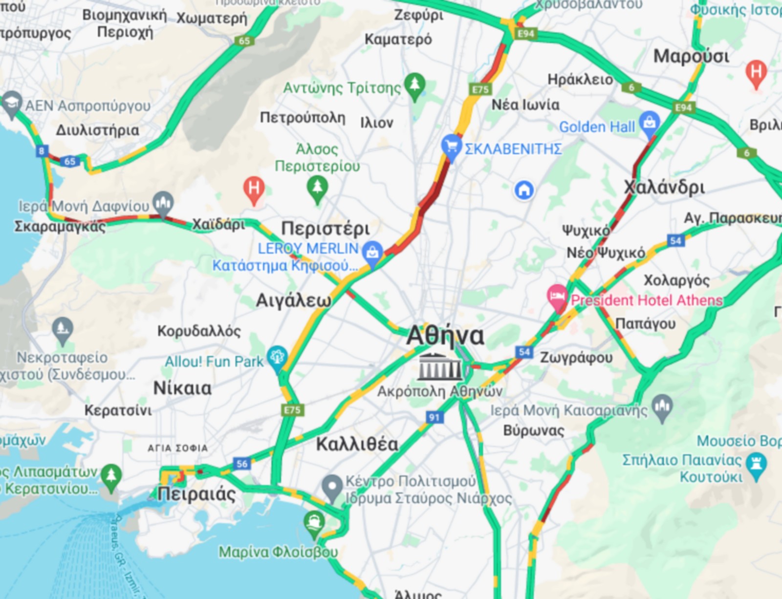 Κίνηση στους δρόμους: Σε ρυθμούς Ερντογάν η Αθήνα – Πού υπάρχουν προβλήματα