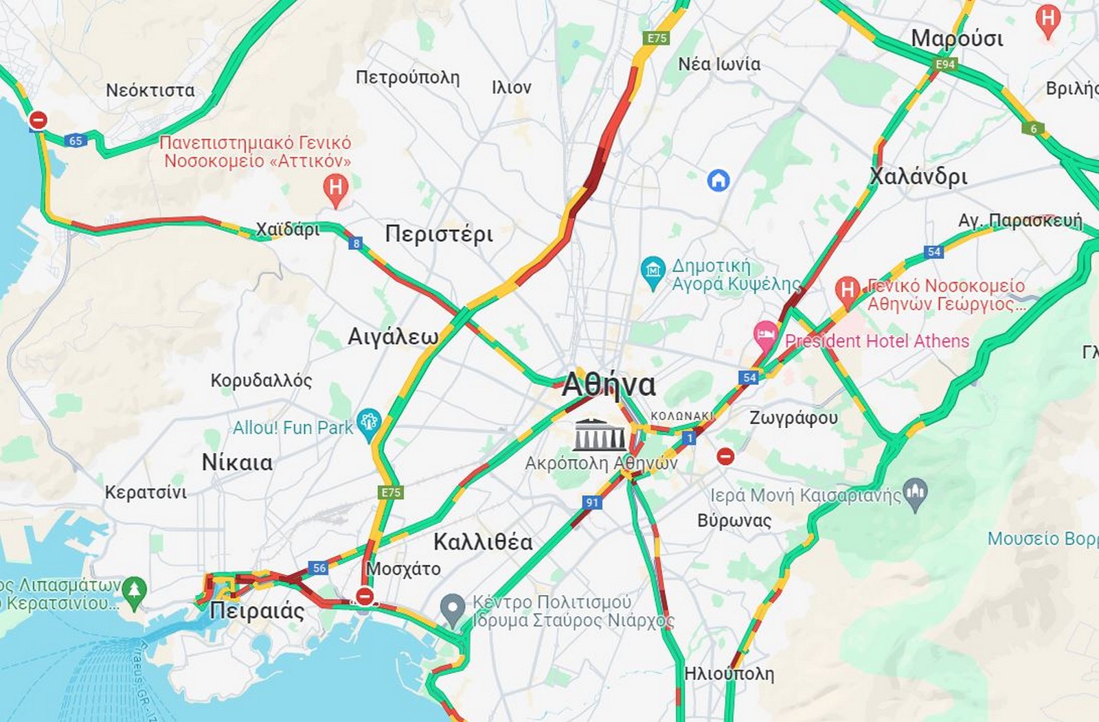 Kίνηση στους δρόμους: Συμφόρηση σε Κηφισό και Αθηνών – LIVE ΧΑΡΤΗΣ