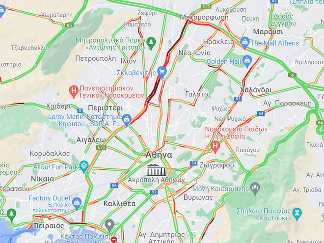 Κίνηση στους δρόμους: Στα “κόκκινα” ο Κηφισός, προβλήματα στο κέντρο – LIVE ΧΑΡΤΗΣ