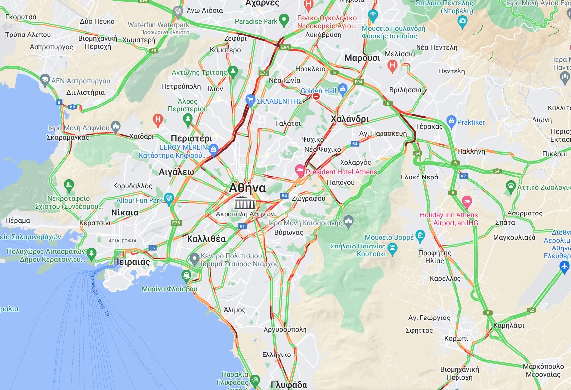 Κίνηση στους δρόμους: “Στο κόκκινο” η Αττική – “Χάος” σε κεντρικούς δρόμους