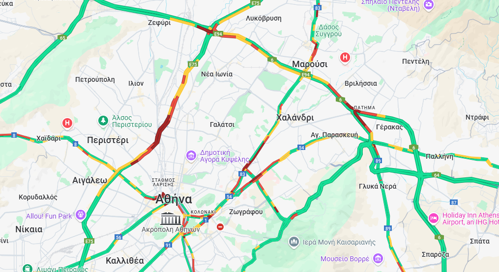 Κίνηση στους δρόμους: Στο “κόκκινο” Κηφισός και Αττική Οδός – LIVE ΧΑΡΤΗΣ