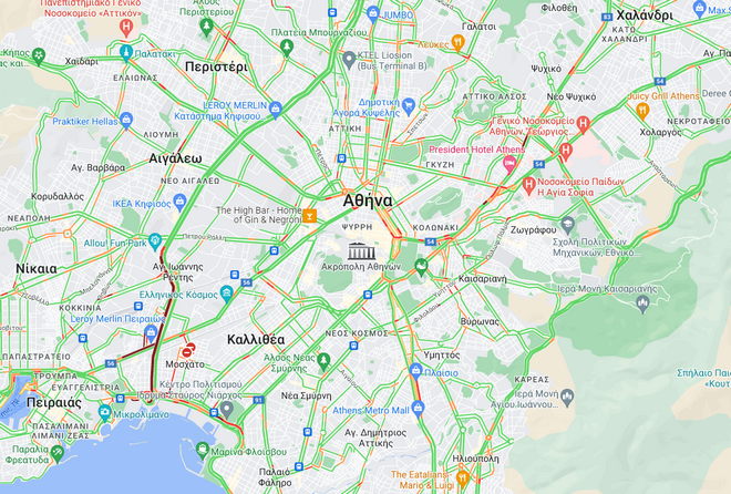 Αντίστοιχα, κίνηση παρατηρείται και στην Πειραιώς, στο ρεύμα της ανόδου, ενώ προβλήματα υπάρχουν και στην Παραλιακή, στο ρεύμα προς Πειραιά.