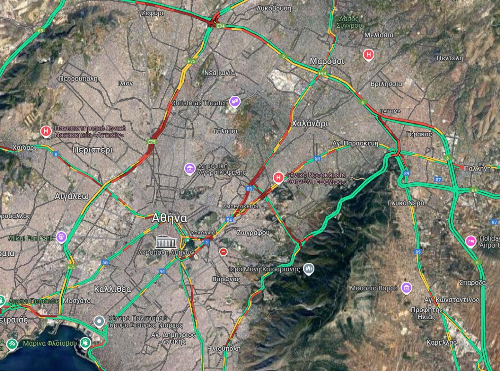 Κίνηση στους δρόμους: “Στο κόκκινο” ο Κηφισός – Προβλήματα και στο κέντρο – LIVE ΧΑΡΤΗΣ