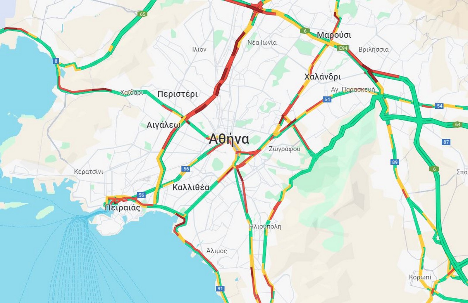 Κίνηση στους δρόμους: Στο “κόκκινο” πολλά σημεία – LIVE Χάρτης