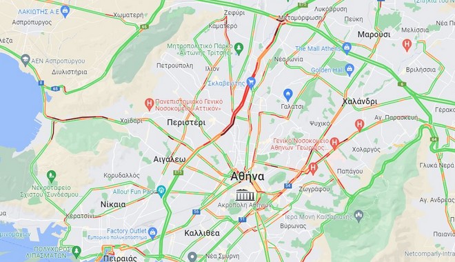 Κίνηση στους δρόμους: Στο κόκκινο πολλές περιοχές – LIVE ΧΑΡΤΗΣ