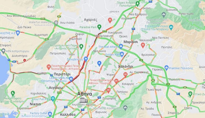 Κίνηση στους δρόμους: Στο κόκκινο πολλές περιοχές – LIVE ΧΑΡΤΗΣ