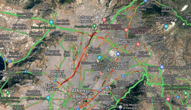 Την ίδια ώρα “στο κόκκινο” φαίνεται πως είναι και το κέντρο της Αθήνας με τα μεγαλύτερα προβλήματα να εντοπίζονται στη Λ. Αλεξάνδρας, Μεσογείων Κηφισίας -και στα δύο ρεύματα- καθώς και στην άνοδο της Λ. Συγγρού.