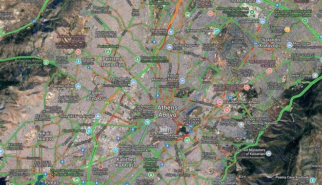 Κίνηση στους δρόμους της Αθήνας Google Maps