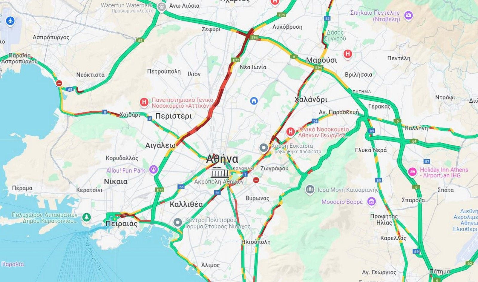 Στο “κόκκινο” και η Ηλιούπολη, προβλήματα και στην Λ. Αθηνών και στον Πειραιά.