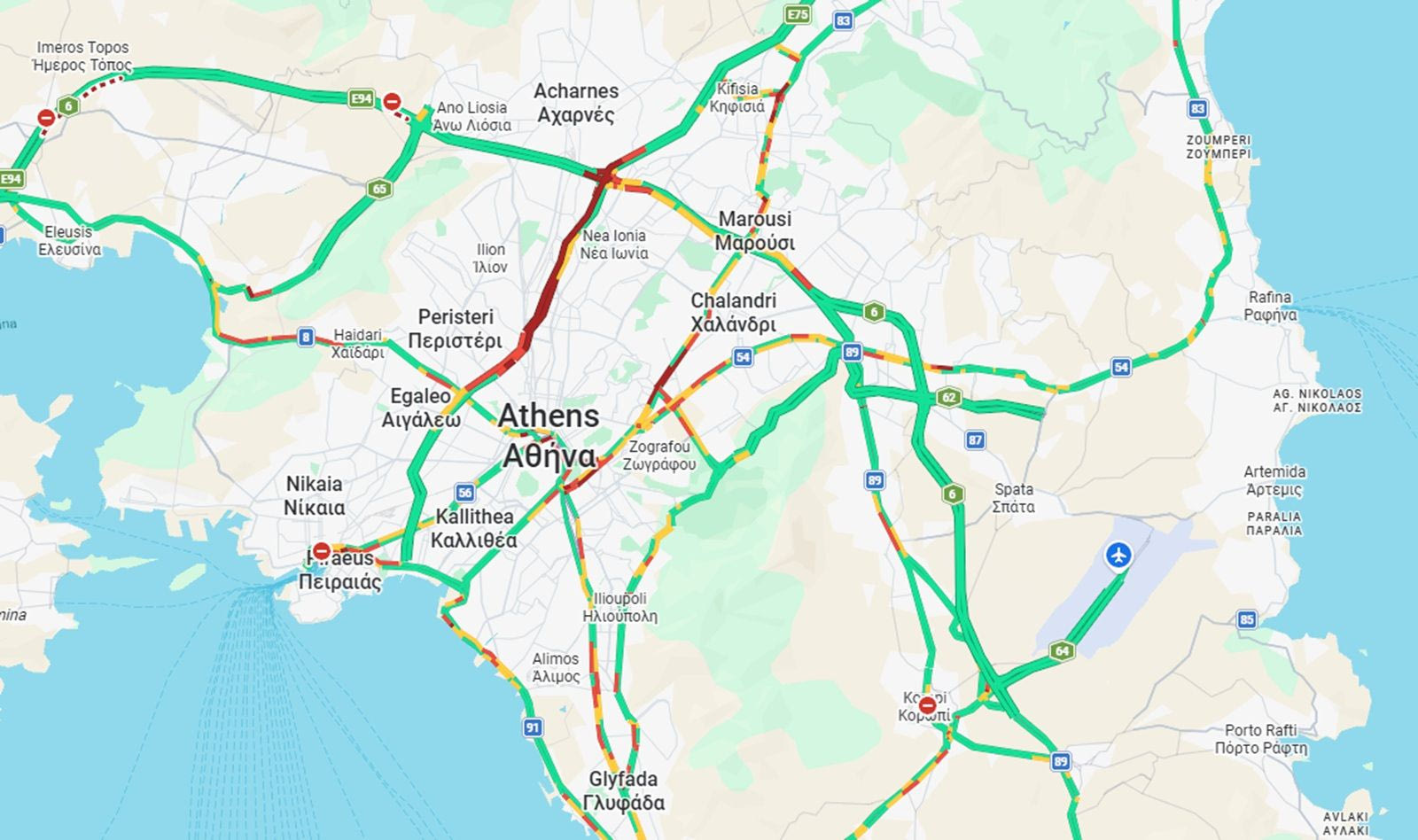 Κίνηση στους δρόμους: Χάος στον Κηφισό και το κέντρο – LIVE ΧΑΡΤΗΣ