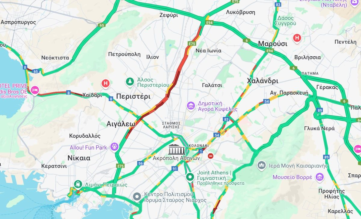 Κίνηση στους δρόμους: Χάος στον Κηφισό από δύο τροχαία ατυχήματα – LIVE ΧΑΡΤΗΣ
