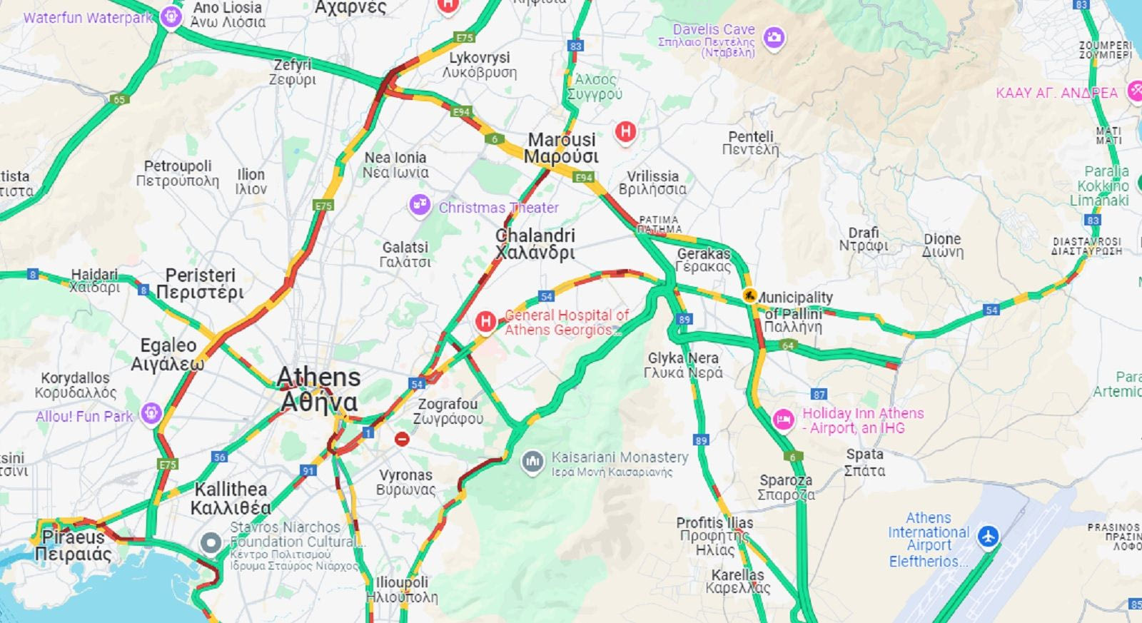 Με χαμηλές ταχύτητες κινούνται τα οχήματα σε κεντρικές αρτηρίες του κέντρου της Αθήνας, με τα μεγαλύτερα προβλήματα να εντοπίζονται στην Κατεχάκη, στο ρεύμα προς Ηλιούπολη, στο ύψος της Καισαριανής, στην άνοδο της Λ. Κηφισίας στο ύψος της Αττικής Οδού, στην κάθοδο της Βασιλίσσης Σοφίας και στην κάθοδο της Βασιλέως Κωνσταντίνου, στην Ακαδημίας και στους δρόμους πέριξ του Μετρό Μεταξουργείου στην πλατεία Καραϊσκάκη.