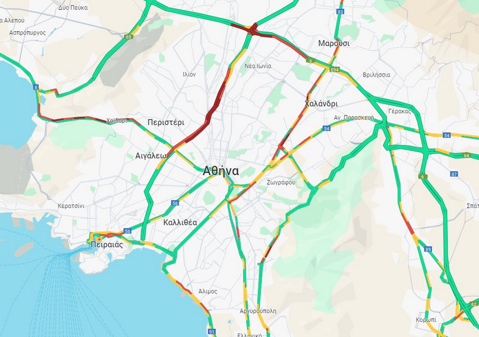 Συμφόρηση υπάρχει και στη Λεωφόρο Αθηνών. Καθυστερήσεις και στην Κηφισίας.
