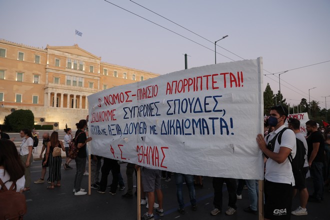 Συγκέντρωση διαμαρτυρίας πραγματοποιήθηκε το απόγευμα της Πέμπτης (14/07) στο κέντρο της Αθήνας κατά του νομοσχεδίου του υπουργείου Παιδείας για τα ΑΕΙ.