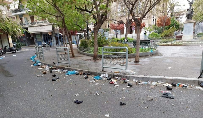 Κυψέλη: 50 σακούλες σκουπίδια από το κορονοπάρτι στην πλατεία Αγ. Γεωργίου