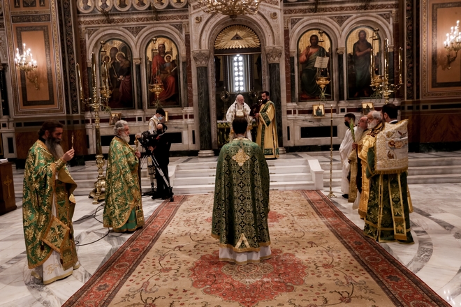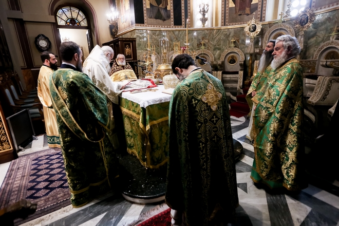 Αρχιερατική Θεία Λειτουργία τελέστηκε στη Μητρόπολη Αθηνών παρουσία περιορισμένου αριθμού πιστών και με την τήρηση των ενδεδειγμένων υγειονομικών μέτρων.
