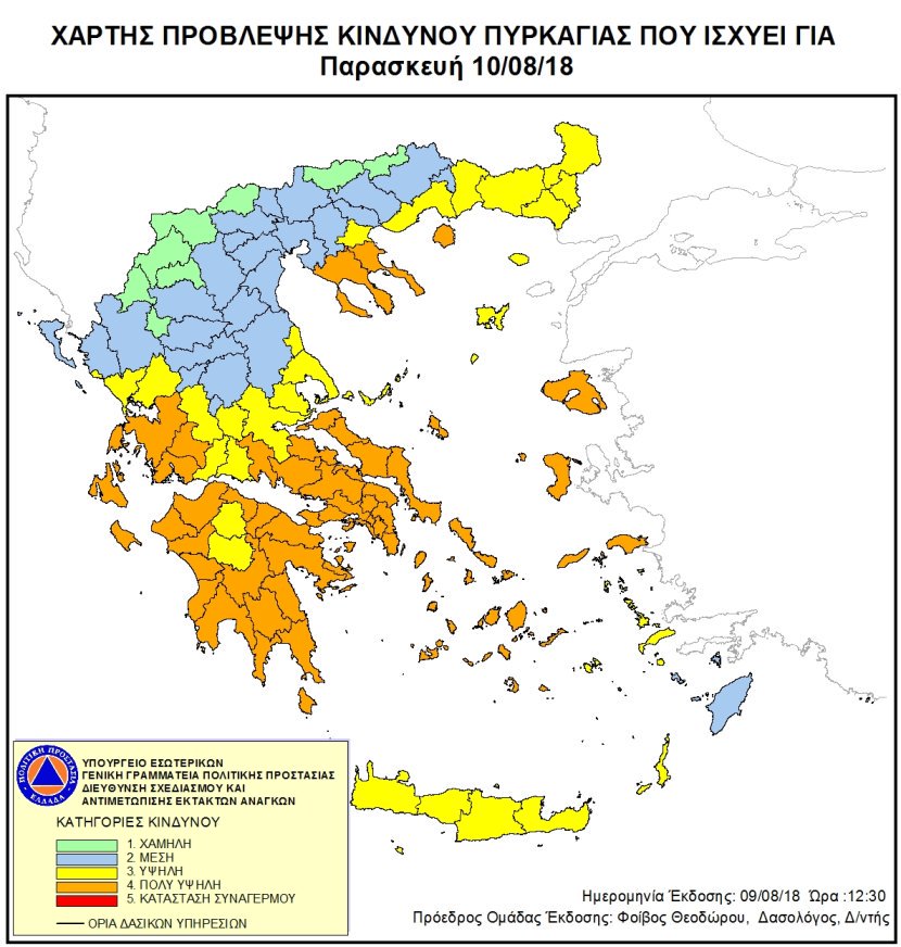 Σύμφωνα με τον χάρτη που εκδίδει η ΓΓΠΠ, σε αυξημένη ετοιμότητα θα πρέπει να δοθεί στα νησιά του Βορείου Αιγαίου και τις Κυκλάδες, την Στερεά Ελλάδα και την Αττική, τα νησιά του Ιονίου, την Δυτική Ελλάδα και την Πελοπόννησο, καθώς και την Χαλκιδική αλλά και την Ανατολική Μακεδονία και την Θράκη.