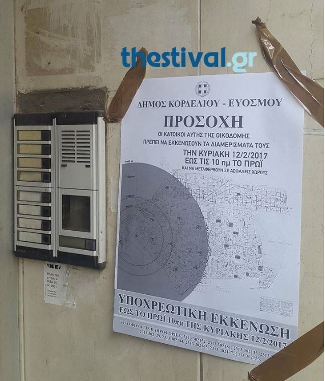 Άρχισε η ενημέρωση των κατοίκων του Κορδελιού που βρίσκονται γύρω από το σημείο όπου εντοπίστηκε η βόμβα στη Μοναστηρίου.