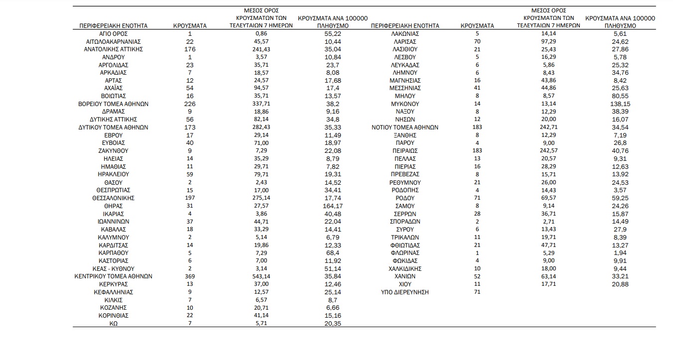 Αναλυτικά η διασπορά των νέων κρουσμάτων σήμερα στην Ελλάδα