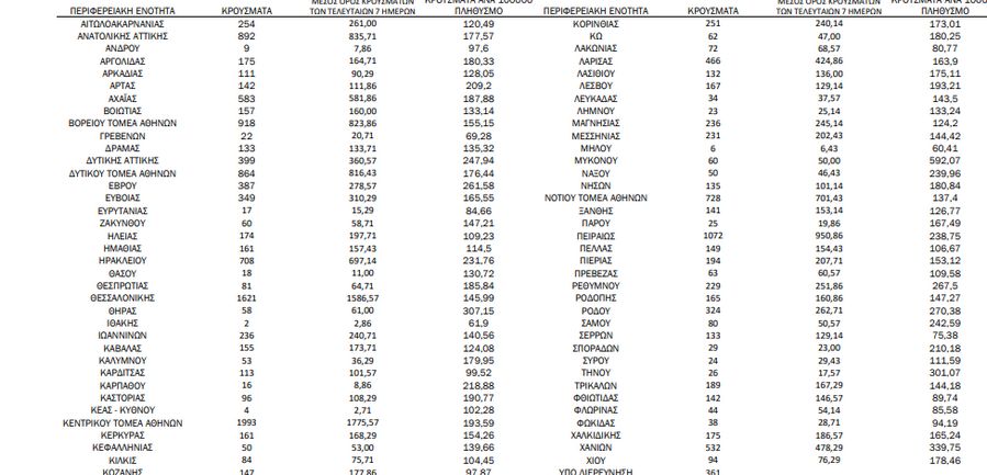 Αναλυτικά η διασπορά των νέων κρουσμάτων σήμερα στην Ελλάδα