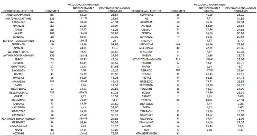 Αναλυτικά η διασπορά των νέων κρουσμάτων σήμερα στην υπόλοιπη Ελλάδα