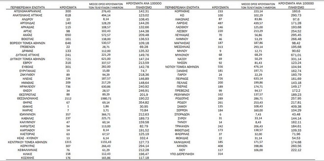 Αναλυτικά η διασπορά των νέων κρουσμάτων σήμερα στην υπόλοιπη Ελλάδα