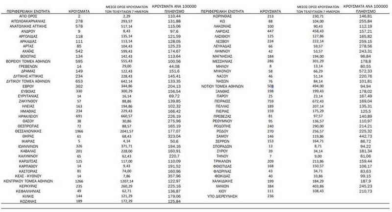 Αναλυτικά η διασπορά των νέων κρουσμάτων σήμερα στην υπόλοιπη Ελλάδα