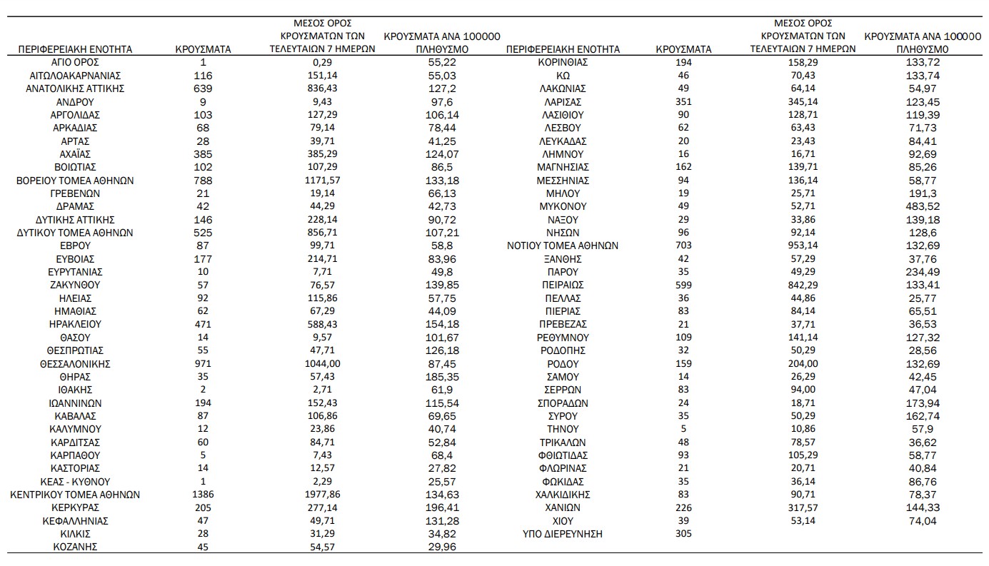Αναλυτικά η διασπορά των νέων κρουσμάτων σήμερα στην υπόλοιπη Ελλάδα