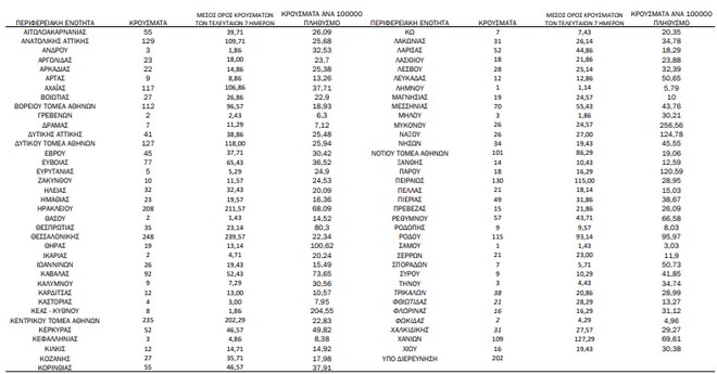 Αναλυτικά η διασπορά των νέων κρουσμάτων σήμερα στην υπόλοιπη Ελλάδα