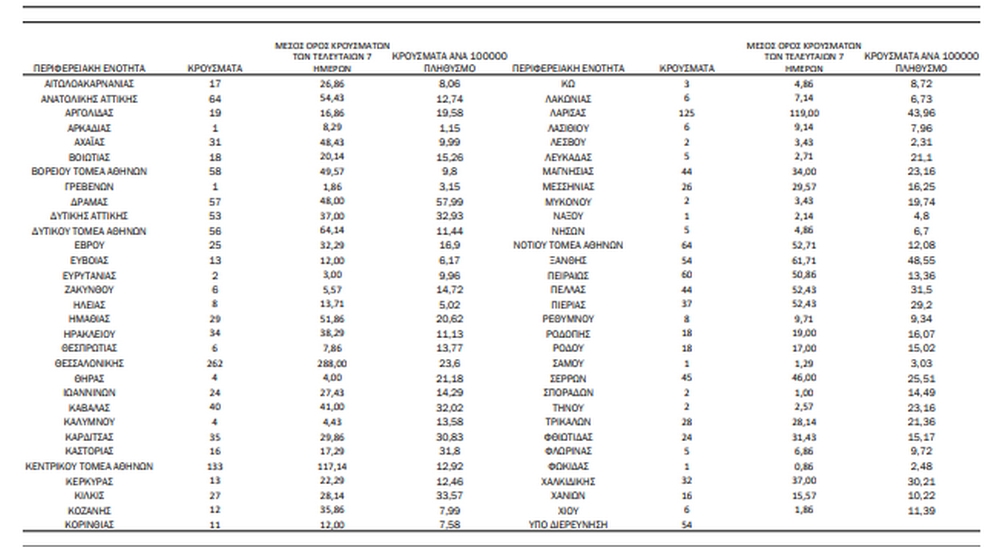 Αναλυτικά η διασπορά των νέων κρουσμάτων σήμερα στην υπόλοιπη Ελλάδα