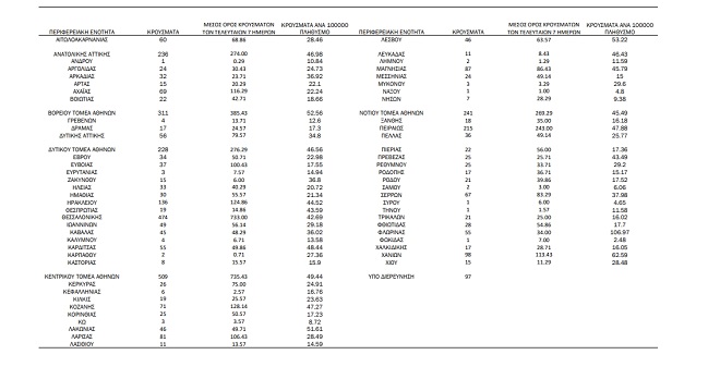 Αναλυτικά η διασπορά των νέων κρουσμάτων σήμερα στην υπόλοιπη Ελλάδα