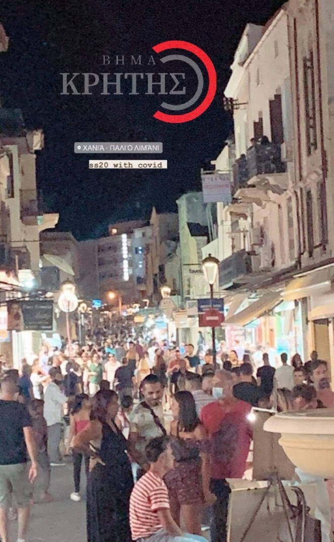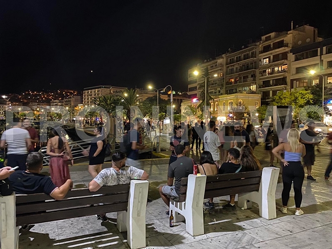 Τόσο στην Καβάλα όσο και στην Κρήτη οι θαμώνες των μπαρ κατέκλυσαν πεζόδρομους και πλατείες όπου συνέχισαν το ποτό τους χωρίς φυσικά να τηρείται κανένα μέτρο απόστασης, όπως φαίνεται και στις φωτογραφίες που δημοσιεύουν τα vimakritis.gr και proininews.gr .