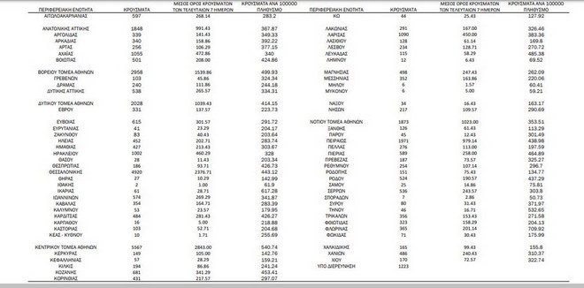 Αναλυτικά η διασπορά των νέων κρουσμάτων σήμερα στην υπόλοιπη Ελλάδα