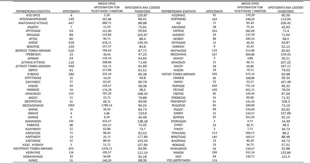 Αναλυτικά η διασπορά των νέων κρουσμάτων σήμερα στην υπόλοιπη Ελλάδα
