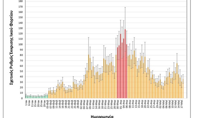 -Μειωμένη κατά 21% σε σχέση με τη μέση τιμή των δύο αμέσως προηγούμενων μετρήσεων της Παρασκευής 14/05 και της Κυριακής 16/05.