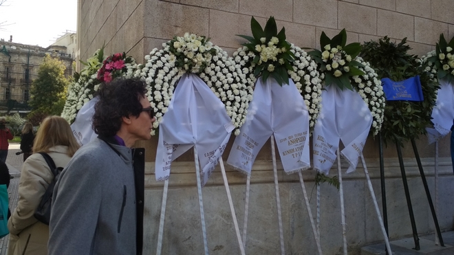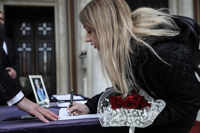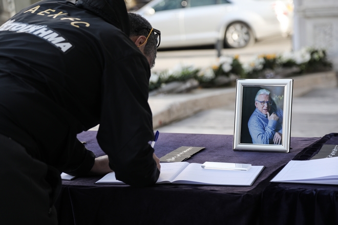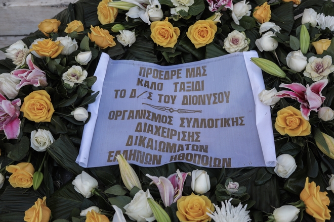 Άνθρωποι του καλλιτεχνικού χώρου, ηθοποιοί, σκηνοθέτες και συνεργάτες του, αλλά και απλός κόσμος που τον αγάπησε μέσα από τη μεγάλη οθόνη, μέσα από τους ρόλους και τις ατάκες του, έσπευσε να του πει το τελευταίο αντίο και να τον τιμήσει με ένα λουλούδι.