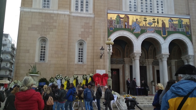 Πλήθος κόσμου μαζεύτηκε το πρωί της Παρασκευής στο παρεκκλήσι της Μητρόπολης Αθηνών, όπου η σορός του Κώστα Βουτσά τέθηκε σε λαϊκό προσκύνημα, προτού μεταφεθεί στην τελευταία του κατοικία, στο Α’ Νεκροταφείο Αθηνών.