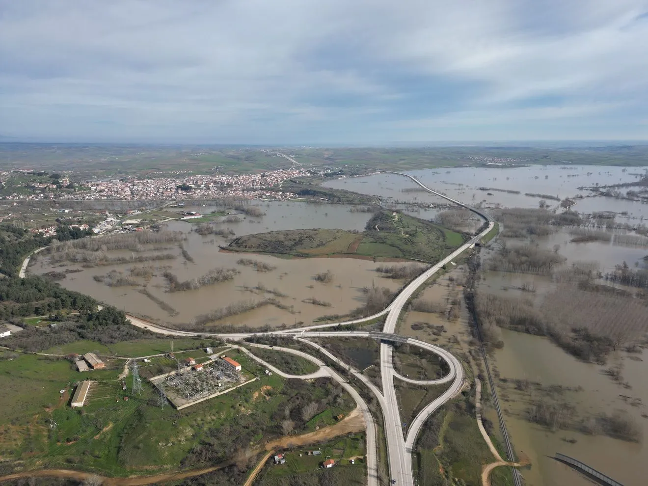 Φωτογραφία τραβηγμένη με drone που εικονίζει πλημμυρισμένη έκταση σε περιοχή του Έβρου, την Τρίτη 24 Φεβρουαρίου 2026. Σε κατάσταση συναγερμού βρίσκεται για έκτη συνεχή μέρα ο Έβρος, με ολόκληρη την παρέβρια περιοχή του Δήμου Σουφλίου να έχει πλημμυρίσει εξαιτίας της μεγάλης ανόδου των υδάτων του ποταμού. Με την κατάσταση να επιδεινώνεται διαρκώς καθώς έχουν σπάσει τα αναχώματα, κινδυνεύουν οικισμοί. ΑΠΕ-ΜΠΕ/ΑΠΕ-ΜΠΕ/ΔΗΜΗΤΡΗΣ ΑΛΕΞΟΥΔΗΣ